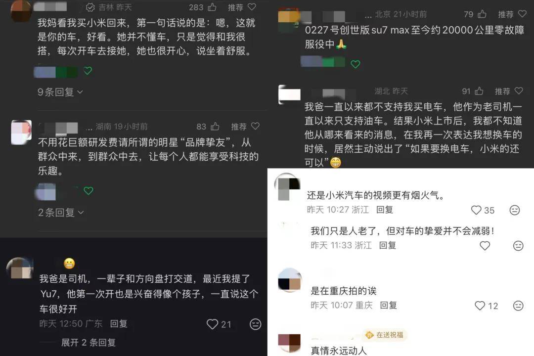 在社交媒体上,你会看到不少用户表达自己的观感:“这个关于父亲的故事完全戳中了我”、“很有烟火气的短片”、“我们只是人老了,但对车的挚爱并不会减弱!”……这些自发表达,不仅放大了作品的影响力,也进一步吸引更多人带着好奇观看,延续短片的热度和话题度,以及对品牌的关注。