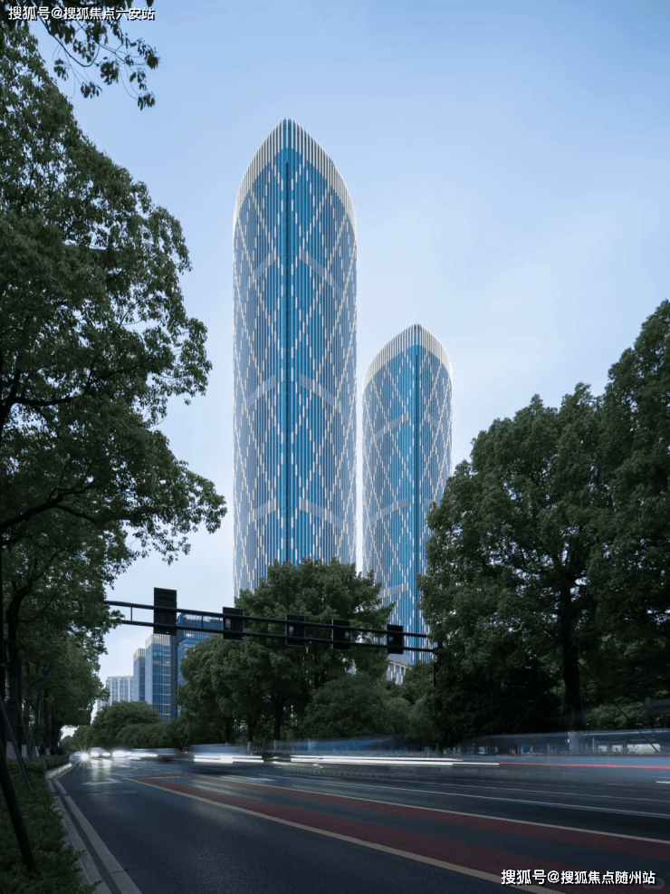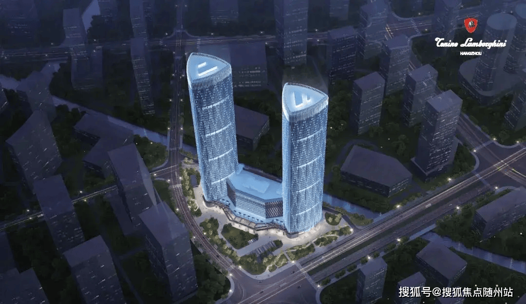 建筑规划:250米双塔地标(T1写字楼、T2行政公寓)+12层兰博基尼酒店,总建面30万㎡,容积率2.5,绿化率83%。