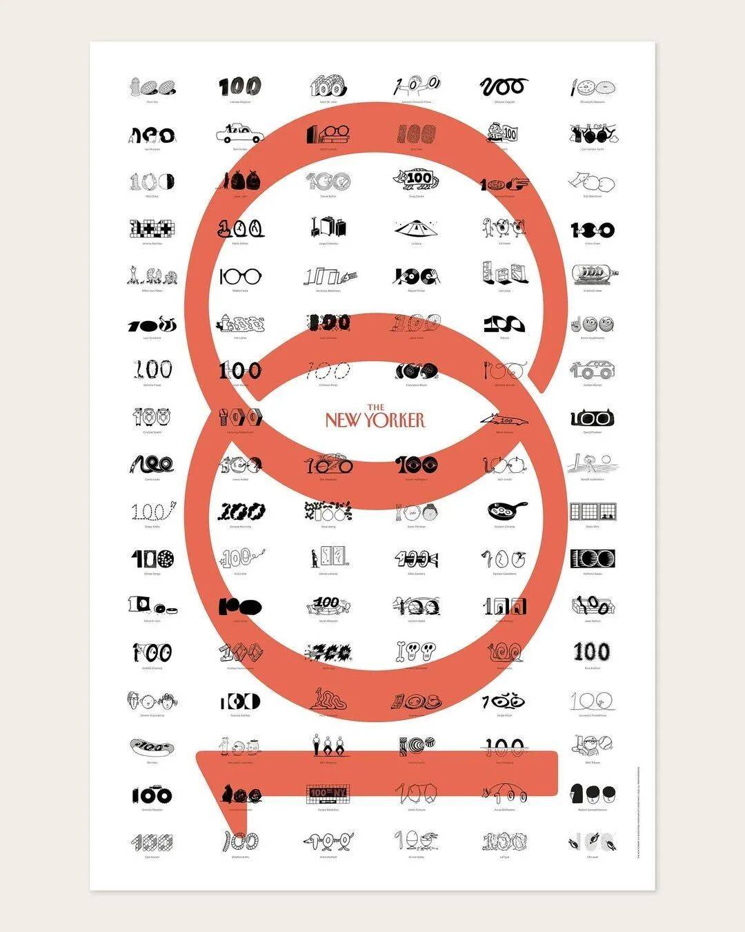 近日,《The New Yorker》杂志为庆祝创刊 100 周年,邀请了全球 100 位插画艺术家参与“100th Anniversary Spot-Art Poster”项目,每位艺术家以独特风格解读数字 “100”,以纪念这一个世纪以来该刊在新闻、小说、诗歌、幽默等方面的卓越表现。