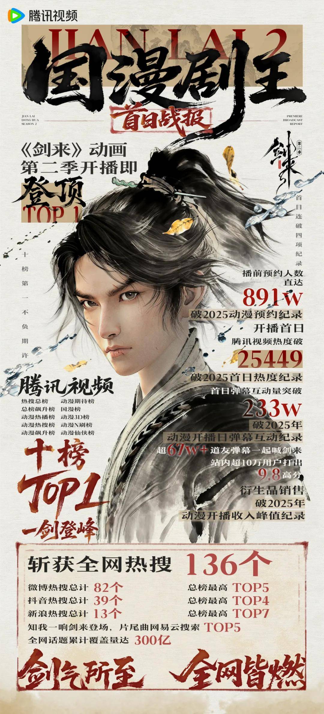 在注意力最为稀缺的当下,观众愿意参与各项互动,本身就是投入情感的有力证明。这份情感联结也转化为实打实的市场成绩:动画第二季收获人气、口碑双丰收的开播成绩,不仅热度值破25000+,打破预约、热度等多项平台纪录,衍生品销售也更新了2025年动漫开播收入峰值。IP、主创与粉丝形成良性循环,续作获得市场热情回应,同样说明粉丝的信赖与口碑,才是系列动画长线运营的最佳助力。