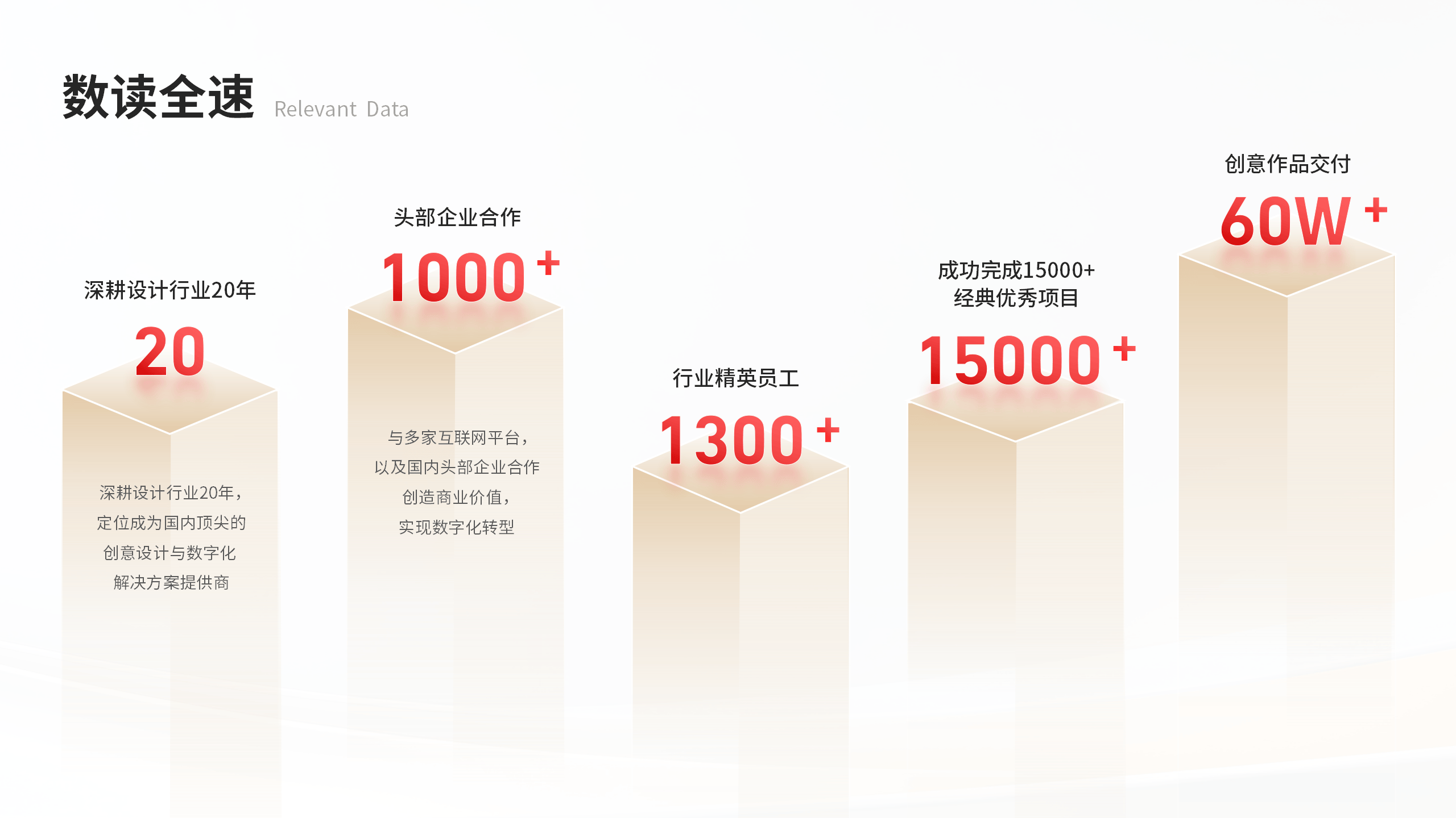 全速深耕设计行业 20 年,至今已服务超 1000 家头部互联网平台与国内领先品牌,在电商、零售/快消品、互动娱乐、金融理财、生活服务、知识教育、交通出行、3C/智能制造、IT/互联网、地产建筑等行业积累了深厚的经验。公司的多项作品荣获过国内外大奖,包括纽约数字奖金奖、美国缪斯奖金奖、法国设计奖金奖、伦敦设计奖金奖、IAI 传鉴国际广告奖金奖、2025 年度 ADMEN 国际大赏内容营销类实战金案、TBI 杰出品牌创新奖、虎啸奖等,这些都充分证明了其设计水平和服务质量。