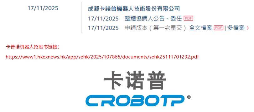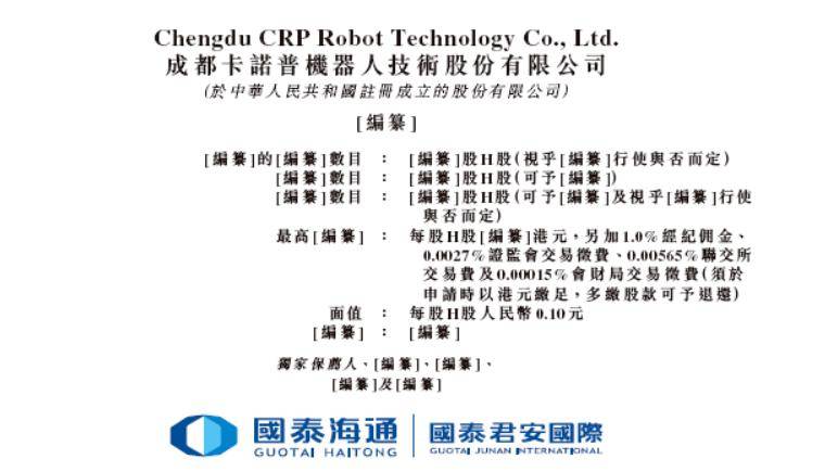 卡诺普机器人,递交IPO招股书,拟赴香港上市,国泰海通独家保荐 18C特专科技公司香港上市