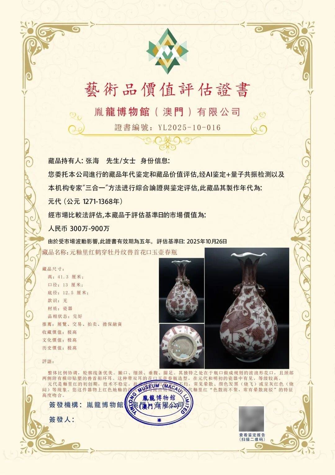 、鉴定评估收入:预计第1年300万元,第2年1000万元,第3年3000万元。胤龙博物馆(澳门)有限公司签发艺术品价值评估证书收费标准: