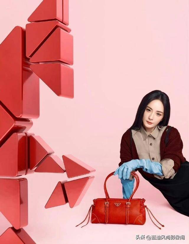 结合杨幂此前的 Prada 造型(如 VOGUE 大片中的橙色、紫色等饱和色系穿搭),新年广告延续 “色彩碰撞中的平衡感”—— 深色服饰搭配金属色三角徽标配饰,既凸显徽标的视觉焦点,又通过暖色调(如赤马的红色系延伸)传递新春暖意,同时马龙的简约正装造型则强化了 “经典与当代” 的对话。