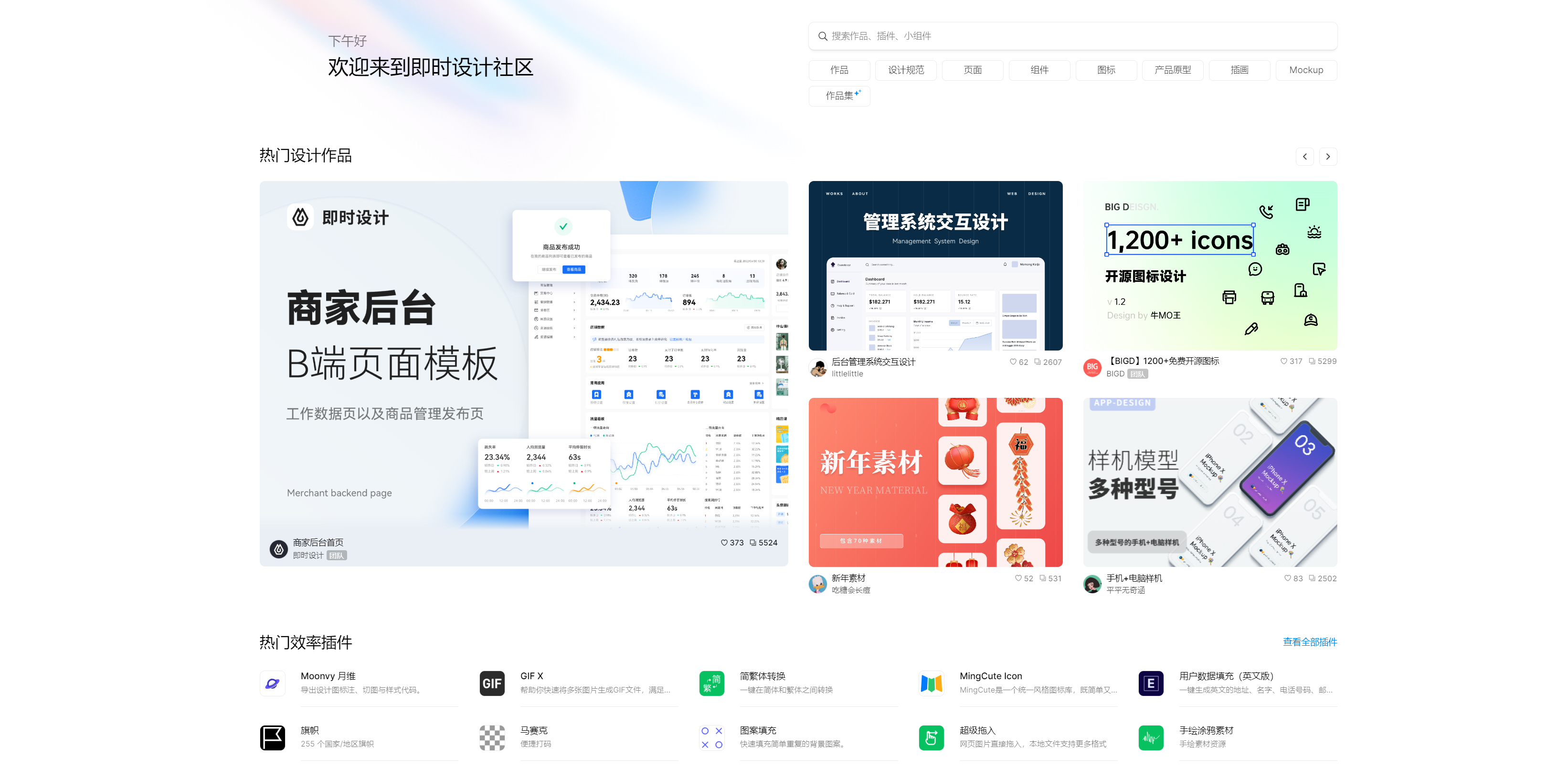 即时设计资源广场是一个由用户共同创建的灵感设计网站,用户可以在上面分享自己的设计资源、插件、UI kits、模板、图标等。社区中的资源丰富多样,涵盖了各种设计领域和应用场景,包括品牌设计、UI设计、移动应用设计、网页设计、插图设计等