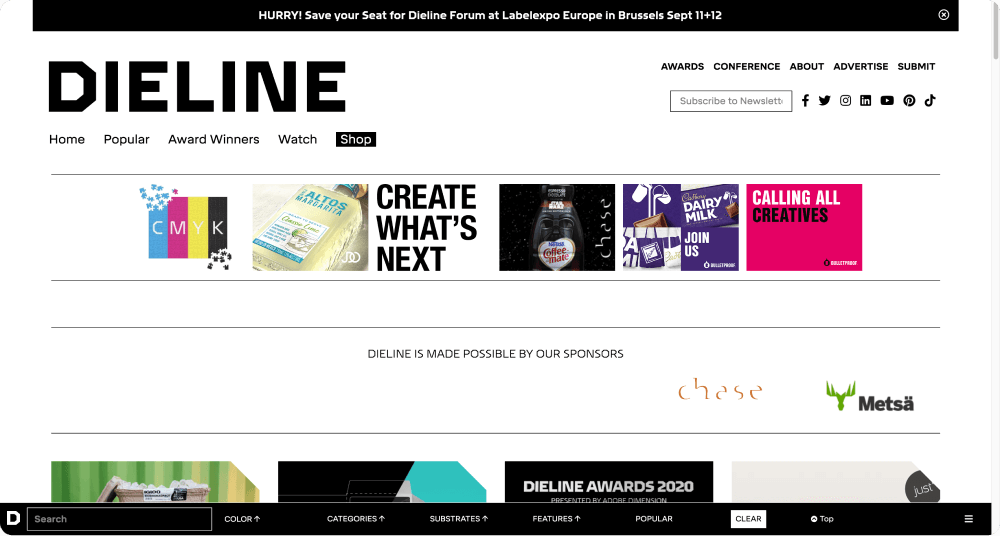 Thedieline是一个以包装设计为主题的网站,汇集了众多来自世界各地的精美包装设计作品,种类广泛,从食品包装到化妆品包装应有尽有。该网站不仅展示包装设计成品,还提供包装设计新闻、设计师访谈、设计技巧教程等内容,是了解包装设计行业动向,获取设计灵感的重要平台之一。